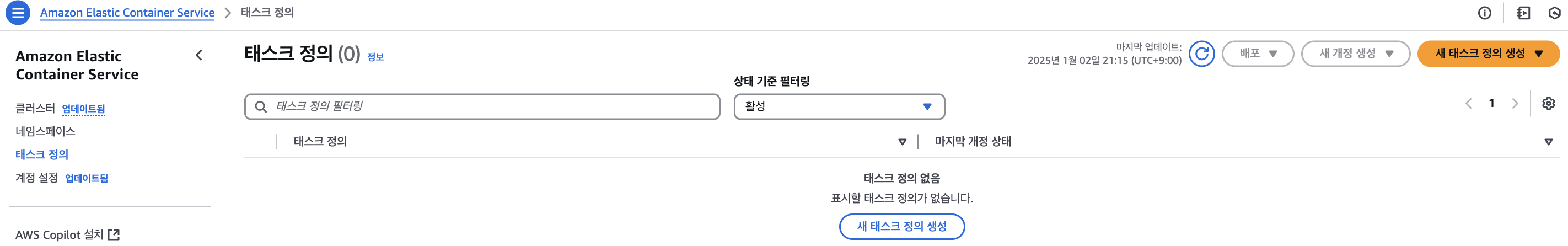 - 컨테이너를 ECS 상에서 실행시키기 위해서는 Task 안에서 정의